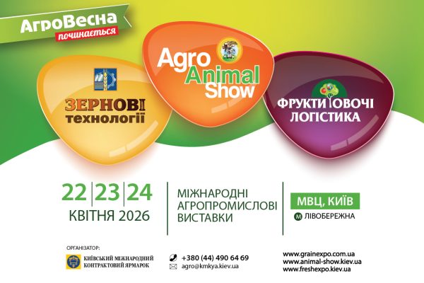 22-24 квітня 2026 року відбудуться міжнародні агропромислові виставки «Зернові технології 2026», Agro Animal Show 2026 та «Фрукти. Овочі. Логістика 2026», які об`єднують фахівців у галузях зернового господарства, тваринництва, птахівництва та плодоовочевої галузі.
