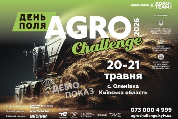 20-21 травня, с. Оленівка (дослідні поля ІМА АПВ НААН), Київська область. 20–21 травня для аграрної спільноти України офіційно відкривається сезон польових подій. Першою зупинкою масштабного всеукраїнського туру від Agro Team Expo стане День Поля «AGRO CHALLENGE» 2026. Цьогоріч захід переїжджає на нову локацію, розширюючи формат і масштаби події.