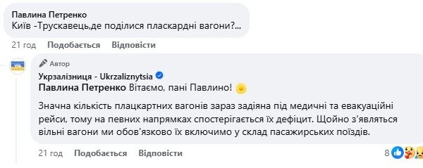 Укрзалізниця повідомила про тимчасове зменшення кількості плацкартних вагонів на деяких