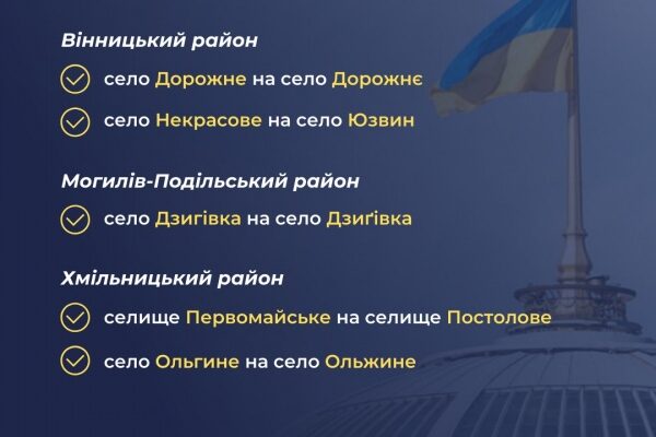 Парламентський Комітет ухвалив рішення про перейменування пʼяти міст, а також 104 сіл та