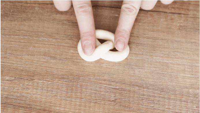 Кожен шматочок тіста розгортаємо в тонкий валик і звертаємо як на фото. Потім однією стороною занурити в цукор.